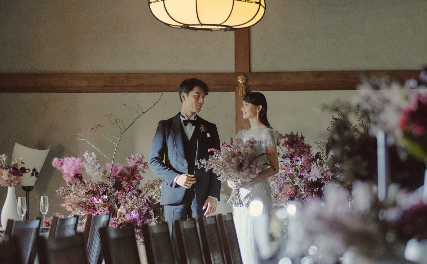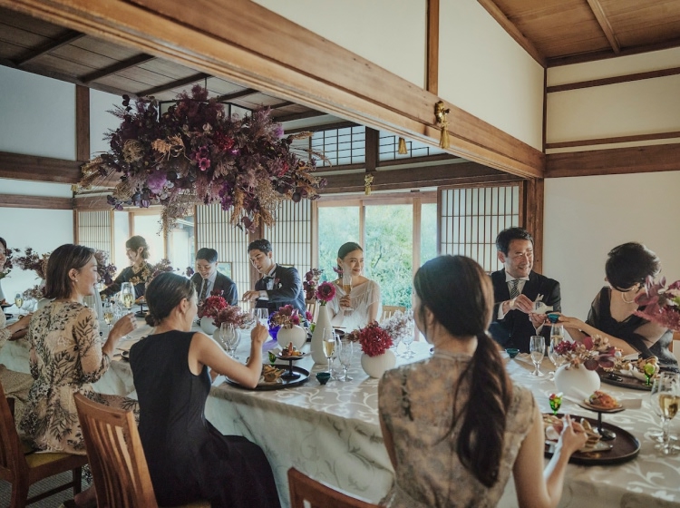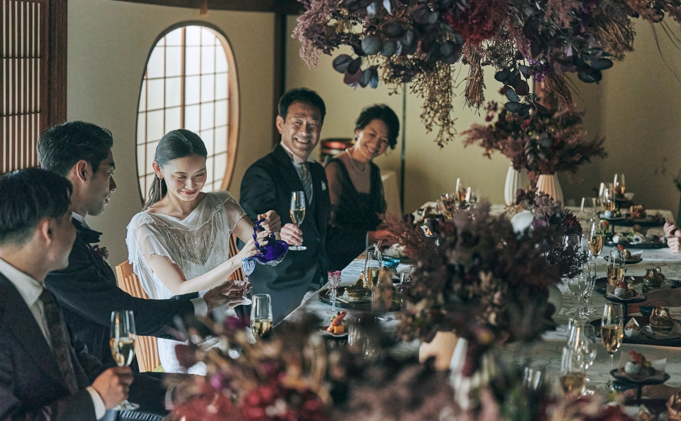 奈良最古の披露宴会場は歴史ある風格と趣を感じます 家族婚に最適なこぢんまりとしたお部屋からは 開放的な日本庭園の美景が四季折々のおもてなし 130年以上もの間 沢山のお祝いのお席を見守ってきた 料亭菊水楼の真髄が詰まった自慢の空間です
